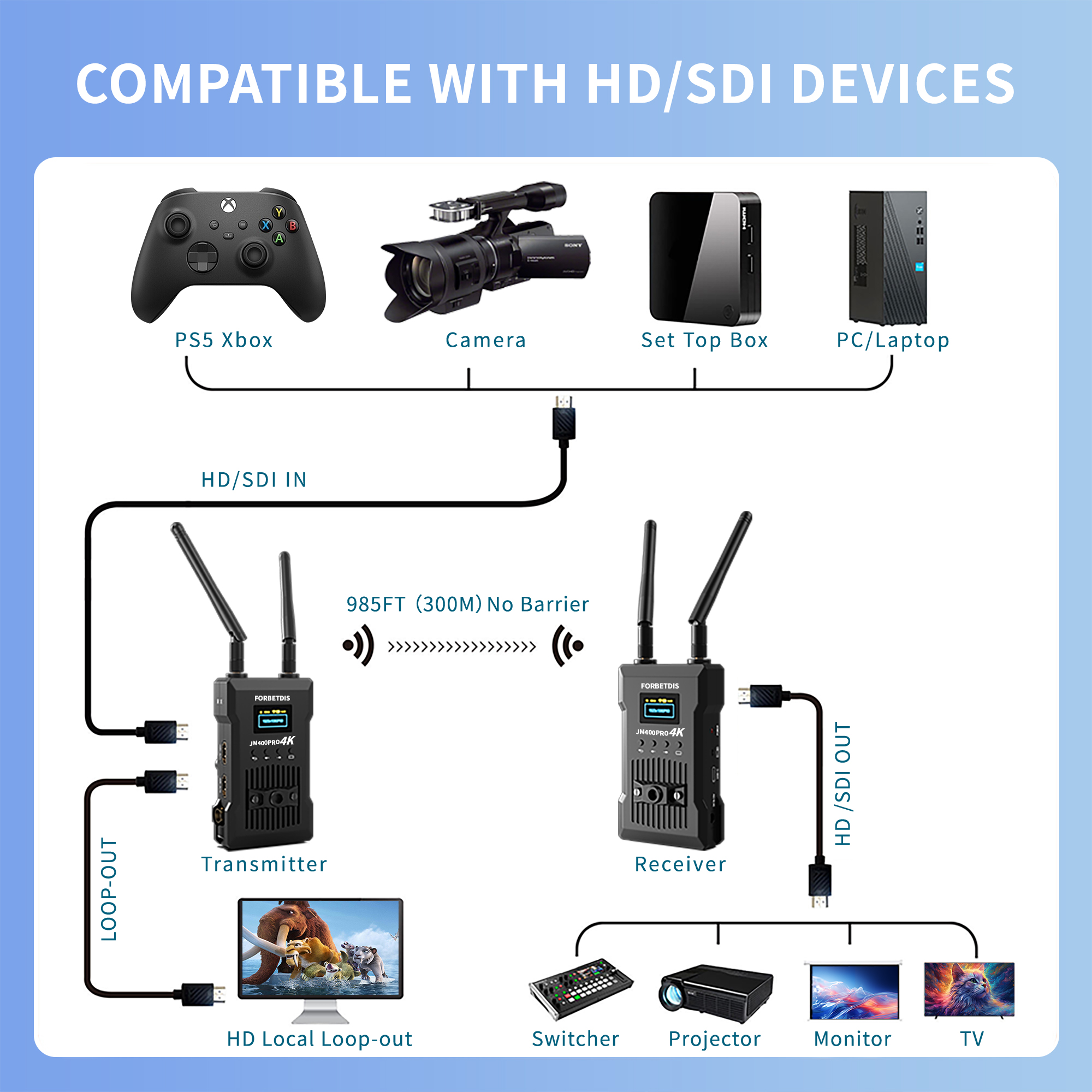 JM400PRO TX-RX 4K HDMI/SDI Wireless Video Transmission System, 985' Range
