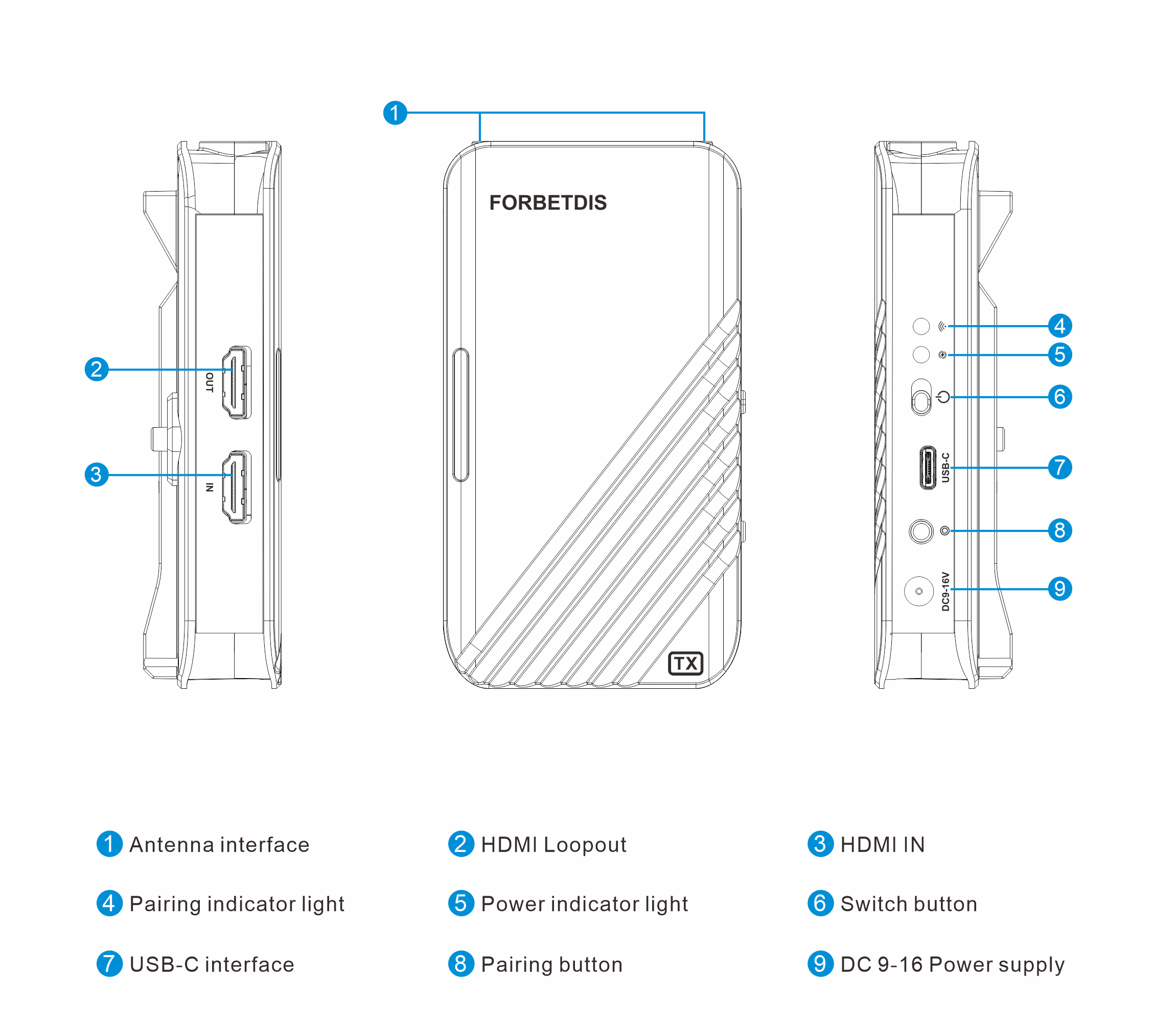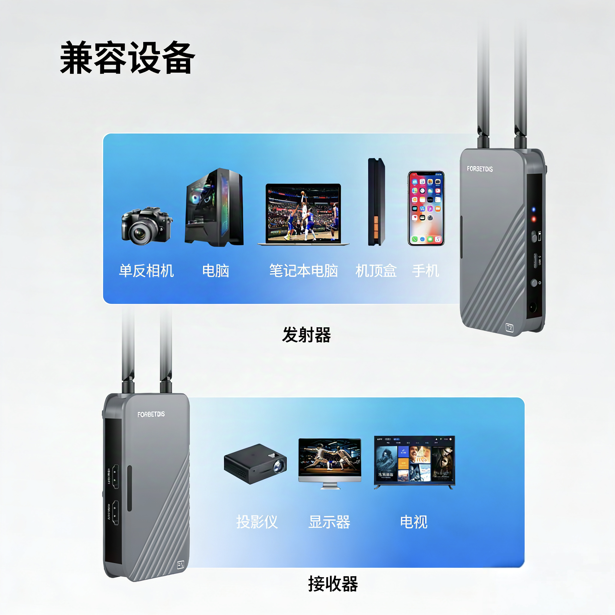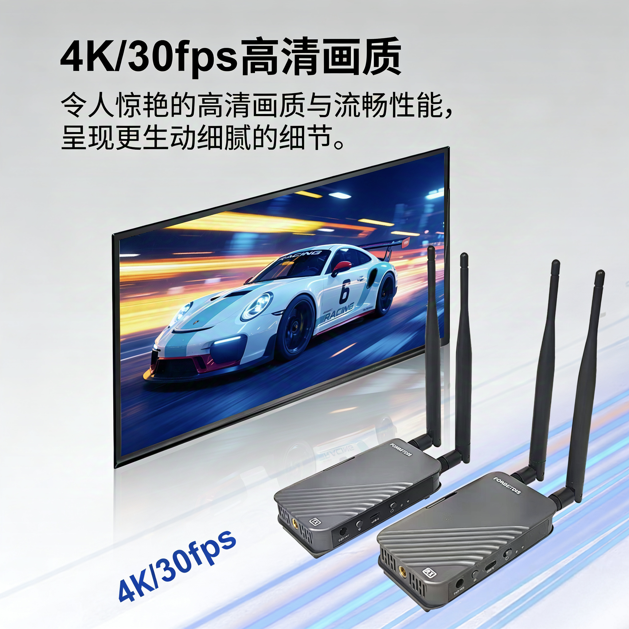 ・发射器支持 HDMI 输入和 HDMI 环出、红外遥控